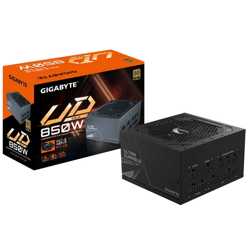 GIGABYTE GP-UD850GMPG5 850W është një furnizues energjie (PSU) me efikasitet të lartë dhe dizajn të qetë, i përshtatshëm për sisteme standarde të kompjuterave desktop.