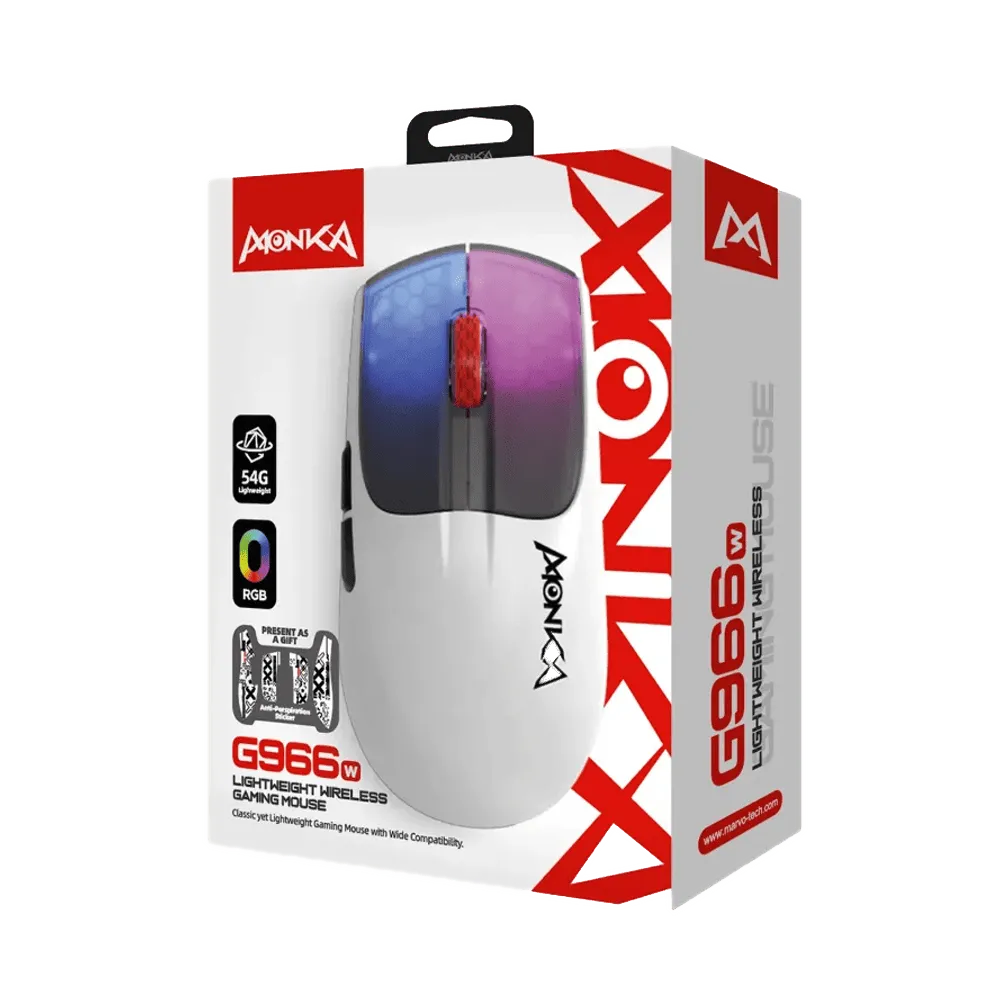 Lëviz lirshëm, reago shpejt dhe luaj me stil! Monka G966W RGB kombinon performancën e lartë, dizajnin ergonomik me 7 butona dhe ndriçimin RGB për një eksperiencë unike gaming. Çdo lëvizje regjistrohet me saktësi falë sensorit PMW3325 si dhe deri në 10000 DPI të rregullueshme.